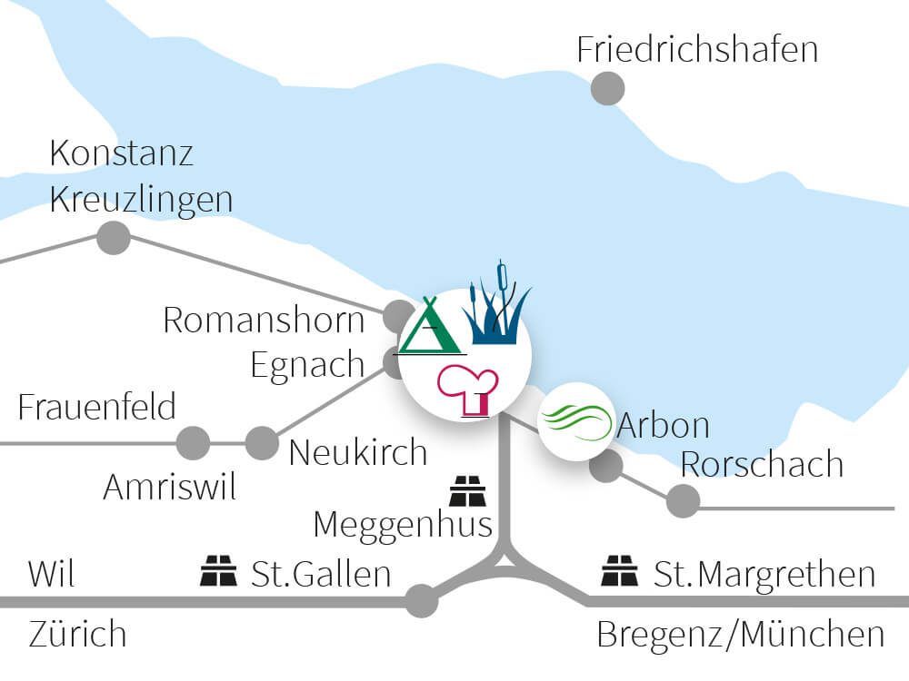 Der Camping Seehorn liegt in der Oberthurgauer-Ferienregion direkt am schönen Bodensee, unweit von St. Gallen und dem Appenzellerland. Ob Sie einen Ferienplatz für das Campingabenteuer, ein Mobilheim oder PODhouse für den komfortablen Aufenthalt oder einen Festplatz für das zweite Zuhause suchen. Wir bieten Ihnen eine grosszügige Anlage, mit direktem Zugang zum See, einer modernen Infrastruktur und der idealen Verkehrsanbindung.