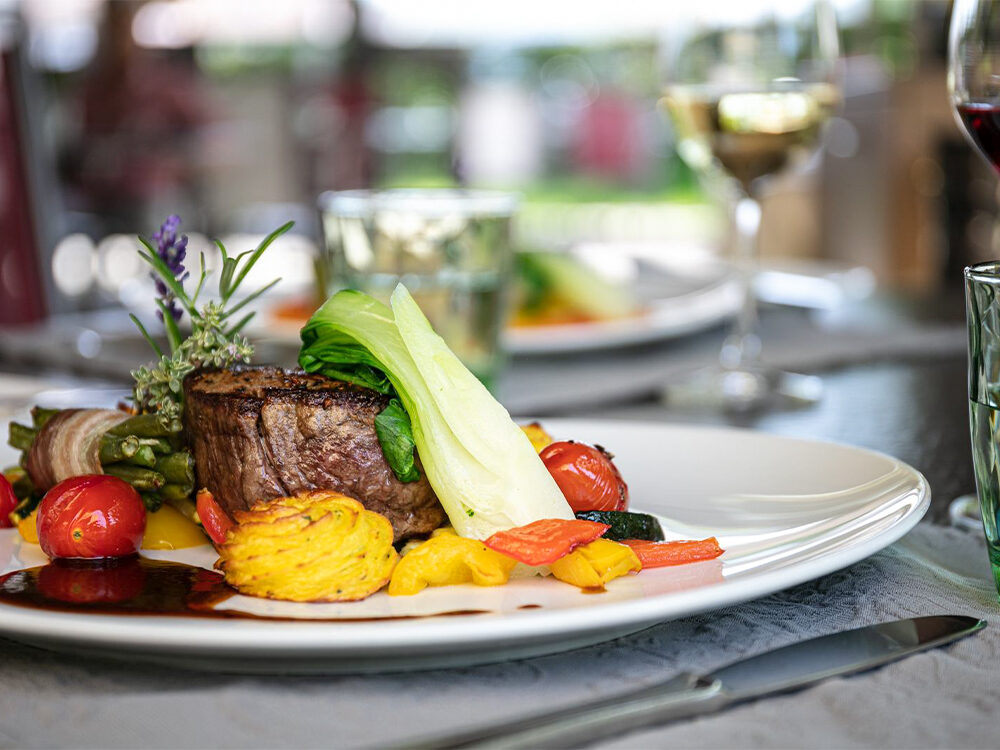 Essen und Trinken wird in unserem schmucken Restaurant oder auf der sonnigen Terrasse zum Genuss für alle Sinne. Mit viel Herzblut pflegen wir echte Gastfreundschaft – persönlich, herzlich und aufmerksam. Unser Küchenteam verwöhnt Sie täglich mit auserlesenen, saisonalen Gerichten, zubereitet mit frischen Produkten aus der Region. Klein, aber fein präsentieren wir eine Speisekarte mit täglich wechselnden Angeboten, die Vielfalt und Qualität garantieren.